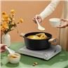 Új dizájn, klasszikus fekete márvány tapadásmentes felület, kivehető bakelit fogantyú, széles szélű fémüveg fedél