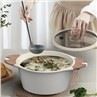 A Bakelica binaurális nyél ellenáll a magas hőmérsékletnek, így biztonságosabb az edény kezelése.
