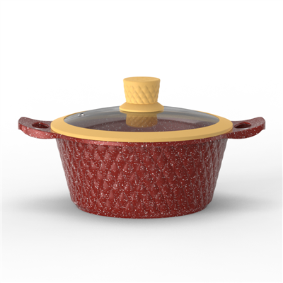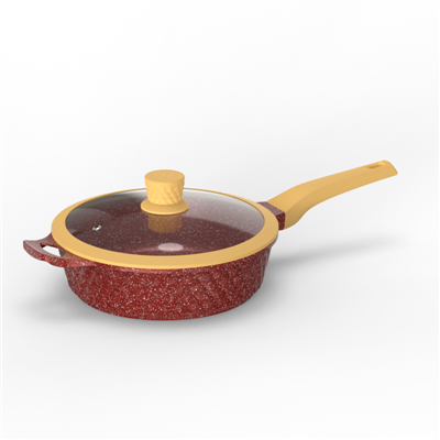 Belső: tapadásmentes márvány bevonat Külső rész: hőálló bevonat Fedél: üveg fedél Fogantyú: bakelit fogantyú Alsó: CD alsó (opcionális) MOQ: 1000 készletOEM és ODM: Nagyon jó helyen Minta: Elérhető