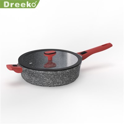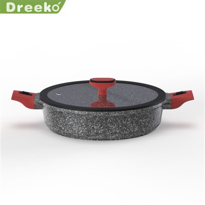 Minden tűzhelyhez alkalmas - Öntött alumínium edénytest nagy mágneses vezetőképességű, rozsdamentes acél keverék aljával. Lehetővé teszi, hogy a tetővel ellátott serpenyő bármilyen konyhában és főzőlapon működjön, beleértve az indukciót is. Gyorsan és egyenletesen vezeti a hőt.