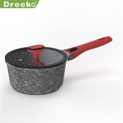 Fogantyú: kivehető fogantyú Anyag: Alumínium Bevonat: Márvány bevonat Készlet: lábasok, serpenyő, wok, tejes serpenyő, beek tányér, pizza serpenyő stb.