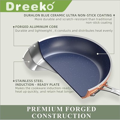 A kerámia bevonat megkönnyíti az élelmiszerek kiengedését és tisztítását, míg a rozsdamentes acél fogantyúk biztonságos fogást és elegáns megjelenést biztosítanak. Az edzett üveg fedelek lehetővé teszik az étel egyszerű nyomon követését anélkül, hogy a hővisszatartás feláldoznának.