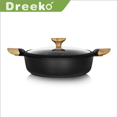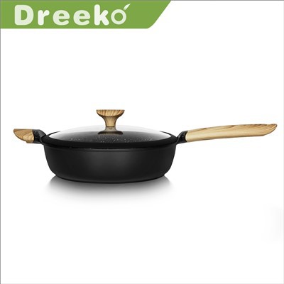 Belső: Kerámia márvány tapadásmentes bevonat Külső: Hőálló bevonat Fedél: Szilikon perem fedél Fogantyú:Fából készült fogantyú Alsó: Indukciós alsó (opcionális) MOQ: 1000 készletOEM és ODM: WelocmeMinta: Elérhető