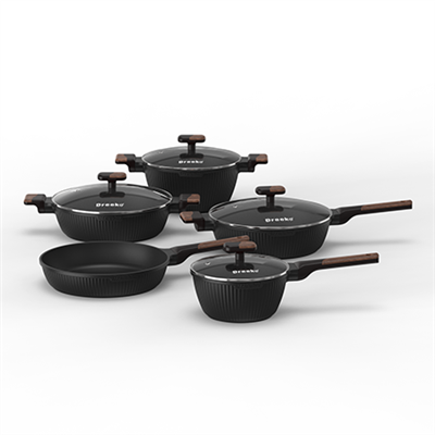 Használat: Otthoni szálloda Étterem Fogantyúja:Fából készült bakelitMOQ:1000 készletnem-mérgező: PFAS-mentes/PFOA-ingyenes Testreszabási szolgáltatás: OED/ODMM Fém Típus:AlumíniumAlsó:Indukciós alsó (opcionális)