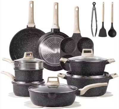Dreeko 21pcs kovácsolt konyhai főzéskészlet Grantie kerámia bevonat sok kiegészítő eszközzel |