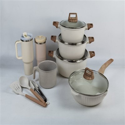 Termék neve:Dreeko függőleges csíkos présöntés főzés bézs nagykereskedelem új stílus Használat:Otthon Hotel Restaurant Fogantyú:FaSzín:FehérFedős,fából készült,puha érintés MOQ 1000szett