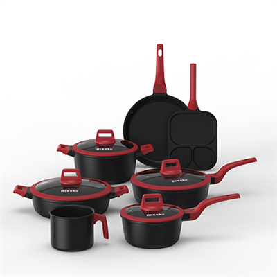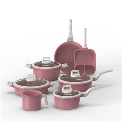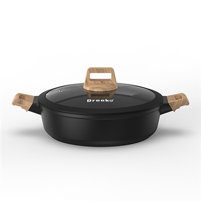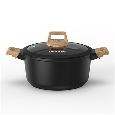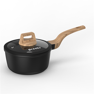 Gyári prés-öntött edénykészlet fa-szemcsés fogantyúk |