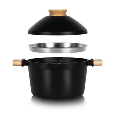 Belső: Tapadásmentes bevonatKülső: Hőálló bevonat Fedél: Alumínium fedél + Üvegfedél szilikon körül Fogantyú: Fa bevonatú fogantyú Alsó: Indukciós alsó (opcionális) MOQ: 1000 készletOEM és ODM: WelocmeMinta: Elérhető