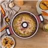 ● A fedél rozsdamentes fém pereme szorosan összekapcsolja a fedelet az edénytesttel, megakadályozva, hogy a hő kiáradjon és az edénybe koncentrálódjon az étel elkészítéséhez.