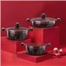 Vörös lakk, fényes és ünnepi megjelenés. Öntött alumínium, KOPÁSálló, strapabíró, nagyobb kapacitású, közvetlenül edényként használható. Bakeliac fülek és gombok, jól érzik magukat, hosszú ideig a fűtés nem meleg
