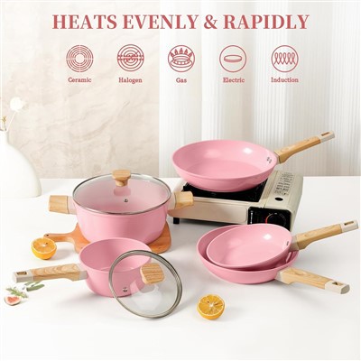 3. A rózsaszín 7 db-os serpenyős készlet csajosabb megjelenést kölcsönöz az embereknek, a női piacon nagyon népszerű, de tele van piaci potenciállal is. Ebben a tűzhelyben meglátszik a humán tudományok iránti törődésünk, valamint a marketingpromóció varázsa.