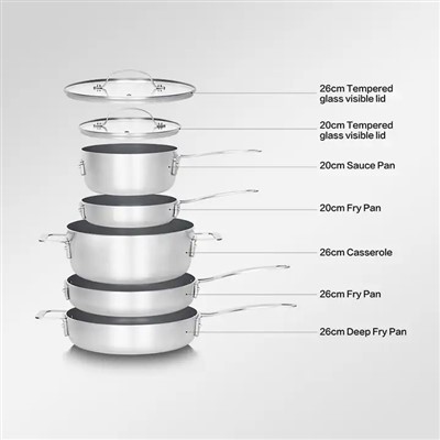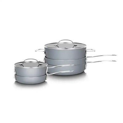A készlet rozsdamentes acél fogantyúja erős és kényelmesen fogható, még akkor is, ha a serpenyő forró. A fogantyú érintésre hideg marad, így nem kell sütőkesztyűt vagy más védőfelszerelést használnia. Ezenkívül ez az edénykészlet személyre szabható, így hozzáadhatja saját logóját, és kiválaszthatja a kívánt színsémát.