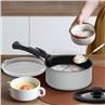 ● LEVEHETŐ FOGANTYÚ – könnyedén válthat a különböző serpenyők között egyetlen gyors mozdulattal, így a főzés gyorsabb és gördülékenyebb lesz. A fogantyú egy kattintással illeszkedik minden alumínium serpenyőhöz, és könnyedén leválasztható, ha sütőedényként szeretné működtetni őket a gyorsabb és gördülékenyebb főzési élmény érdekében.