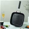 Az alumínium serpenyő egyszerű és stílusos téglalap alakú, felülete nincs bevonva. Könnyen tisztítható hússütés után. A serpenyőben lévő csíkok elősegítik az étel egyenletesebb felmelegedését. A fogantyú egyedi formájú és összehajtható stílust kapott, ami kényelmesebbé teszi a tárolást. A rozsdamentes acél markolat szilikagéllel van bevonva, hogy hatékonyan megakadályozza a magas hőmérsékletű forrázást.