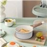 ● A felület kerámiabevonattal van bevonva, és egy darabból öntött, így az edény finomabbnak tűnik. Bakelite plus faszemcsés vízáteresztő hosszú nyél, könnyen használható.