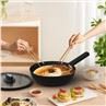 Fekete serpenyő, tapadásmentes serpenyő, könnyen használható, nem drága, hétvégi steak, omlett nagyon kényelmes